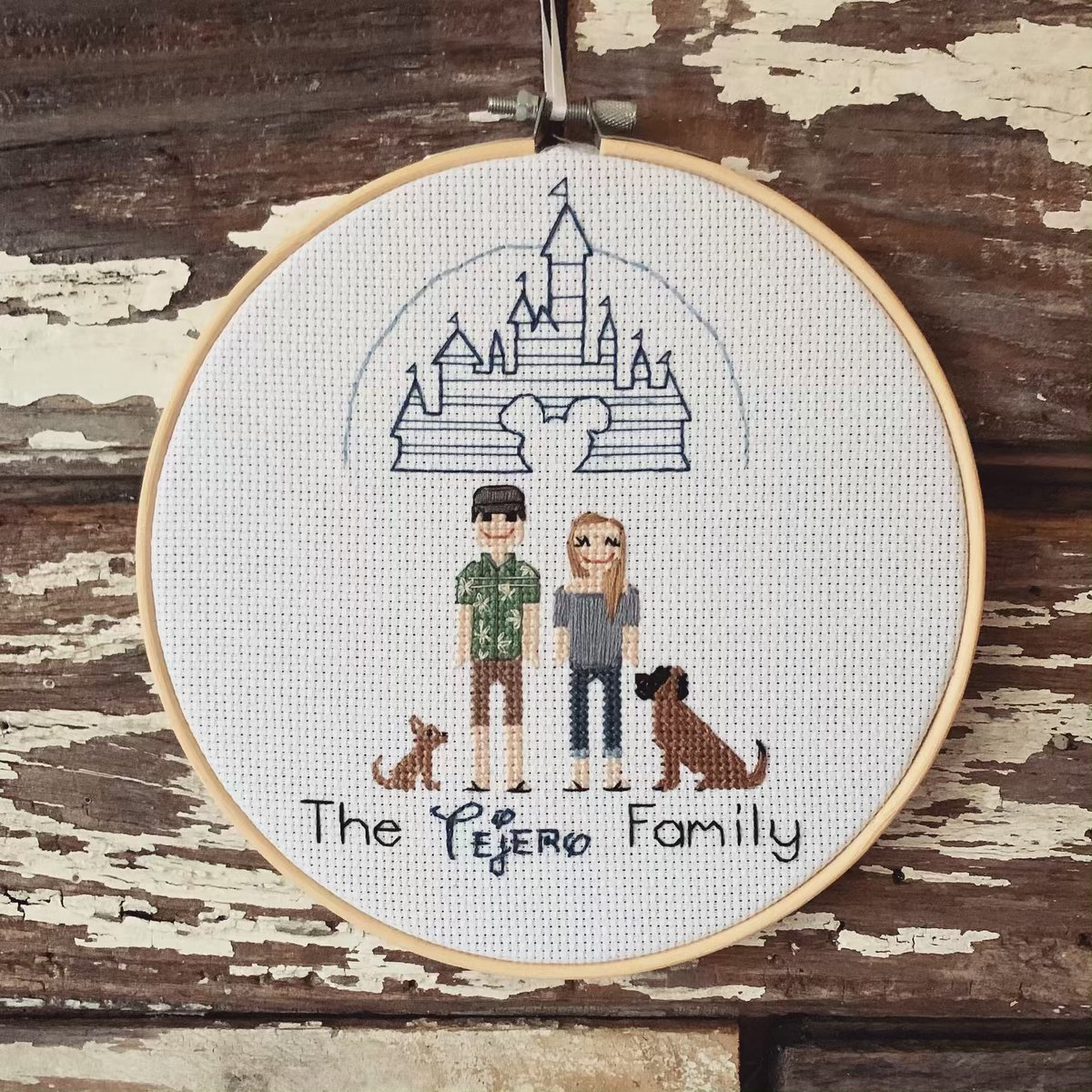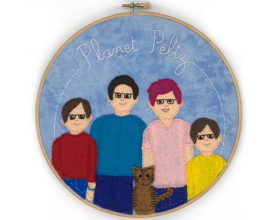 Family Portrait 2 4 People Up To 3 Pets Embroidered Etsy