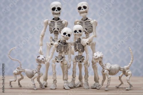 Skeleton Family Portrait With Pets Stock Photo And Royalty Free